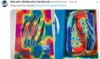 DaVincitheGreat.eth (@DaVinci_ADA) showed off his Gutter display, tweeting, "I finally got my @PUMAHoops Gutter Melo MB.03 and all I can say is wow. The quality and delivery on these shoes is incredible. Pictures do not do this show justice. Thanks to the team and all parties involved to make this shoe possible #Gang #Gang #GutterMelo #NotFromHere"
